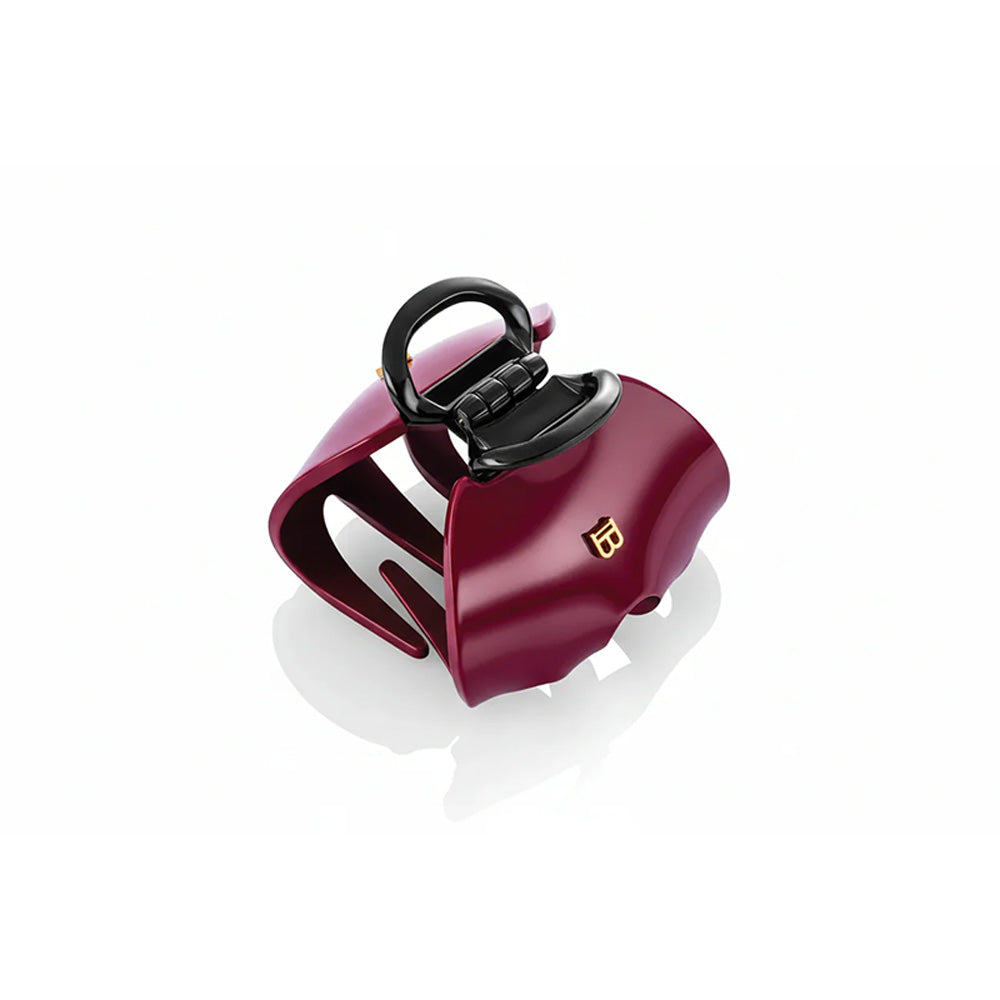 An oversized handcrafted claw clip made from durable cellulose acetate, featuring Balmain's signature 18K gold-plated 'B' logo. It showcases a sophisticated white ivory edge. Specifically designed for long and thick hair, it's perfect for securing hair in a messy bun or a high ponytail.